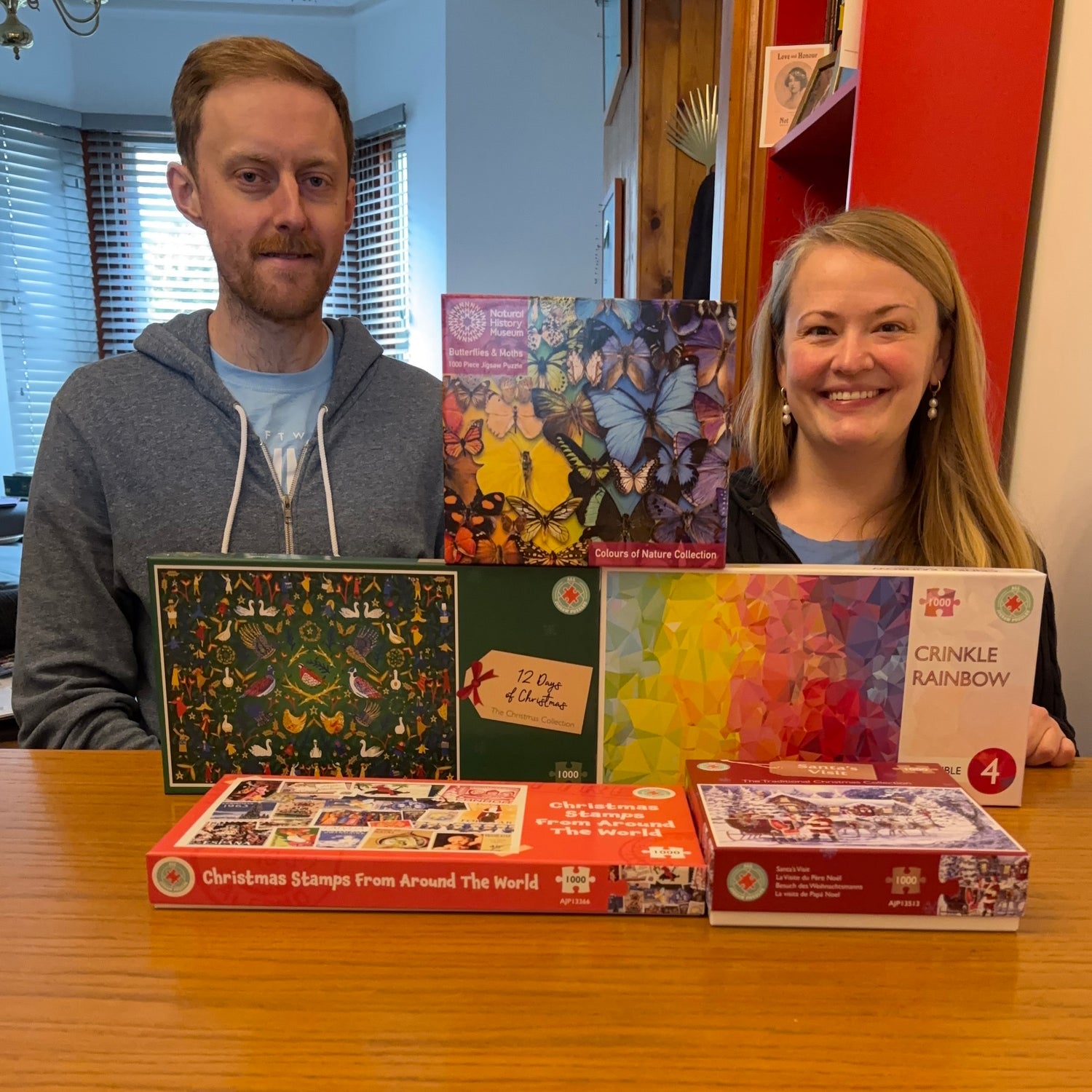 Hello puzzlers! We're SJ and Dan. (Dan is on the left and SJ on the right.) You might know us better as @2puzzlepeople on Instagram where we've been posting about our puzzle adventures since 2021. You can see our favourite AJP jigsaws there, as well!
