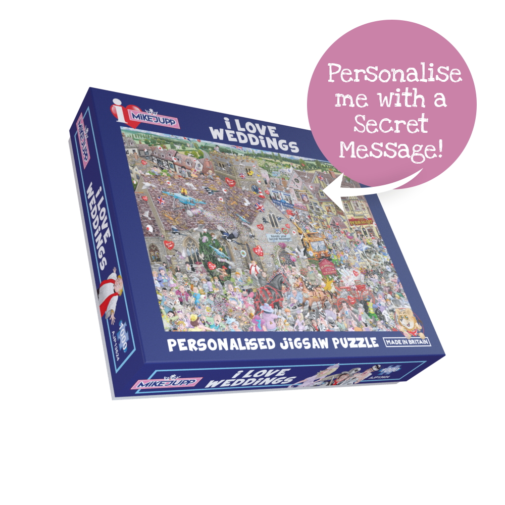 Itβs wedding season β and what better way to celebrate than with a personalised Mike Jupp puzzle? Add your own secret message, hidden within the chaos, to be revealed piece by piece!